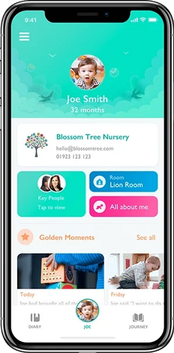 On registration, your child will have their own unique profile created through Blossom. Once created, you can download the app through your mobile device. All information is gathered from yourselves during the settling in period, and all profiles can be amended to specific requirements you may have.